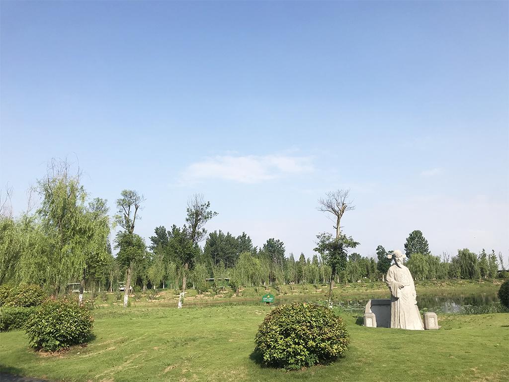 半月湖位于景區(qū)入口與出口交匯處,形狀像半個月亮。湖內(nèi)栽植蒲草、蘆葦、荷花等濕地特有植被,形成小型濕地生態(tài)系統(tǒng)。廣場周邊綠樹成蔭、芳草萋萋,是游客游覽之余休憩、觀景、納涼的重要場所。湖邊的兩尊石雕人物分別是季札和金純,季札是春秋戰(zhàn)國時期的蘇南人,因為“季札掛劍”的故事與泗洪有不解之緣,金純是泗洪本地人,明代三部尚書,不但修建北京故宮,而且疏通京杭運河,是歷史上的一位清官,因為得罪了權(quán)貴,被貶官回鄉(xiāng),去世后葬于泗洪龍集鎮(zhèn)的洪澤湖畔。