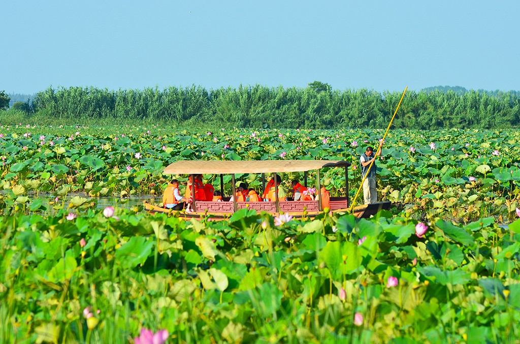夏天的濕地景區(qū)是一種奔放美,此時(shí)荷花盛開、蘆葦青青,萬(wàn)畝荷花與萬(wàn)畝蘆葦交相輝映,恍若人間仙境。